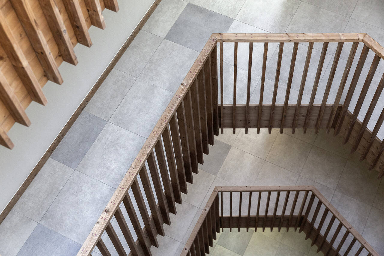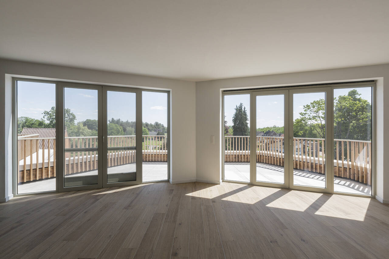 Het gebouw met 15 appartementen staat lichtjes excentrisch gesitueerd in de collectieve tuin. Door het gelijkvloers een beetje op te tillen ten opzichte van het maaiveld behouden de gelijkvloerse appartementen voldoende privacy en blijft het grondverzet beperkt bij het uitgraven van de ondergrondse garage. Dankzij één centrale hal met vide kan het daglicht diep binnendringen. Elk appartement beschikt over twee vrije gevels en een ruim overdekt terras. De gevelbekleding in thermisch verduurzaamd naaldhout zorgt voor een rijke en warme uitstraling.