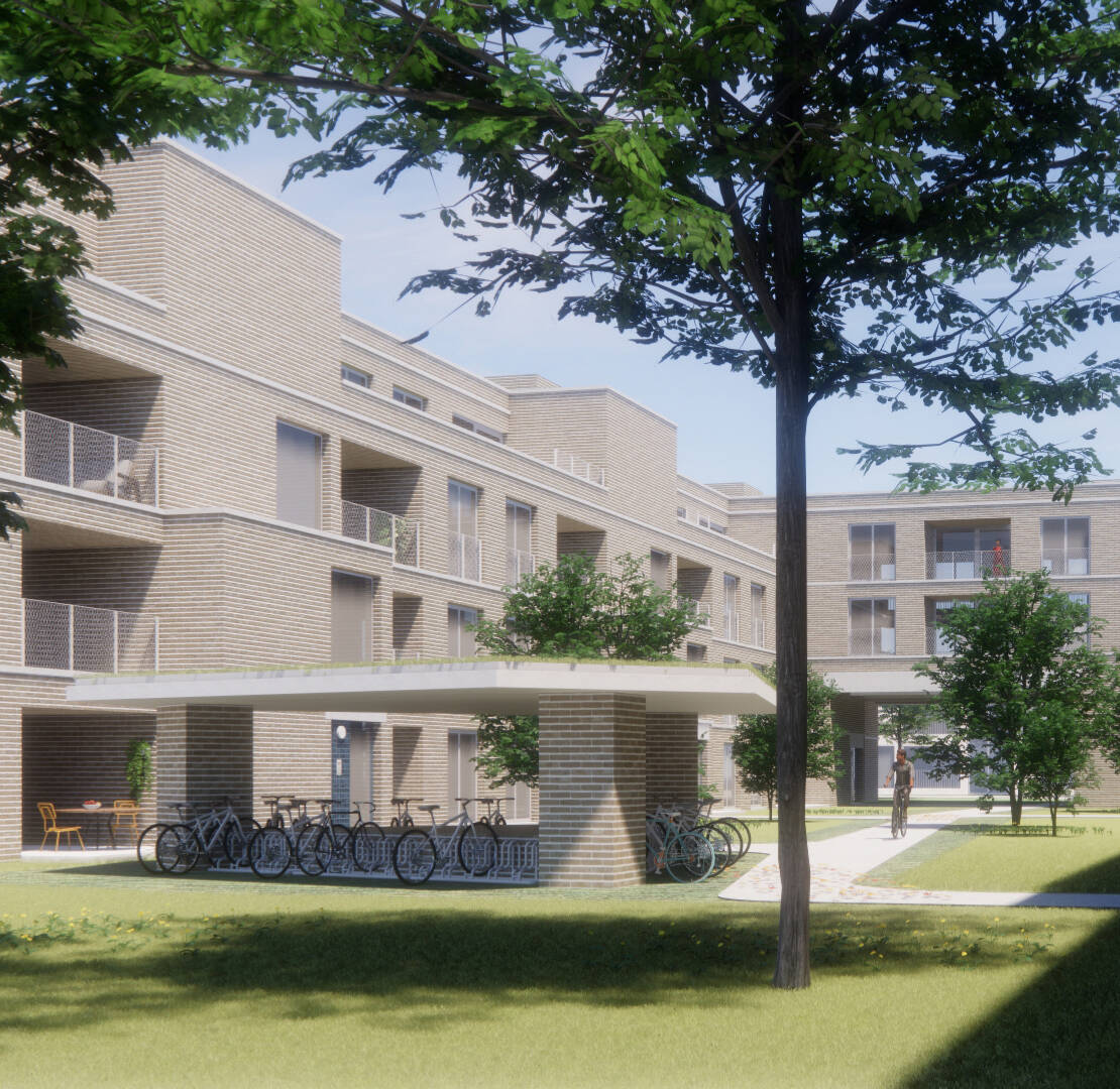 Een voormalige industriële site in het centrum van de stad Turnhout krijgt een residentiële invulling met 41 appartementen. Een lange, smalle vleugel zorgt voor het afbouwen van de blinde muur van de Technico sporthal. Een haakvormig volume met in de oksel een hoge inkompoort sluit hier op aan. Zo krijgen we een gebouw met drie vleugels die een stadstuin afbakent waar het rustig wonen is. De bouwvolumes die variëren in afmeting en de uitsneden van de inpandige terrassen geven het gebouw een levendig uitzicht.